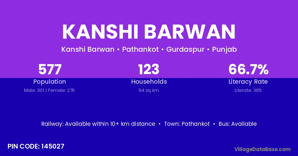 Kanshi Barwan village has a total population of 577 people, of which 301 are males and 276 are females.