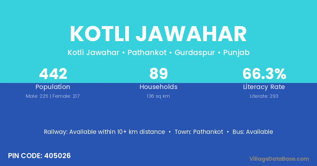 Kotli Jawahar village has a total population of 442 people, of which 225 are males and 217 are females.