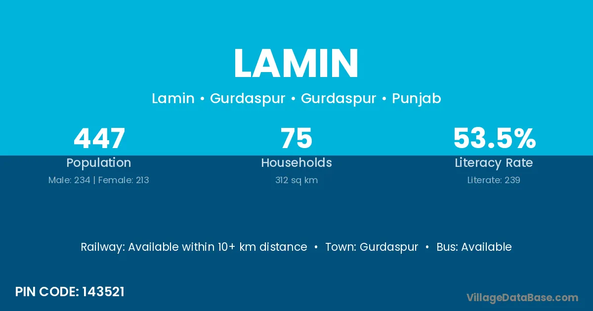 Lamin village is located in the Pathankot Tehsil of the Gurdaspur district in Punjab .