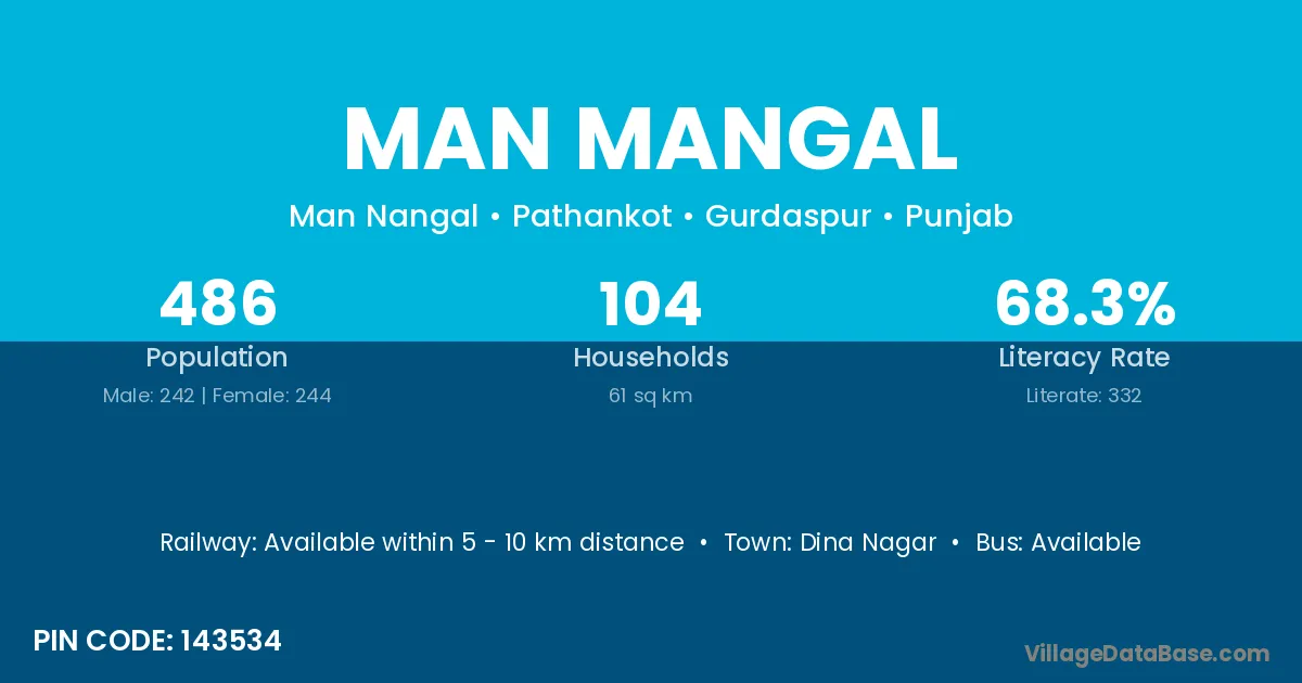 Dina Nagar is the nearest town to Man Mangal village for major economic activities