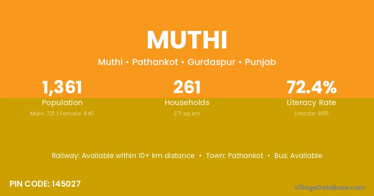 Pathankot is the nearest town to Muthi village for major economic activities