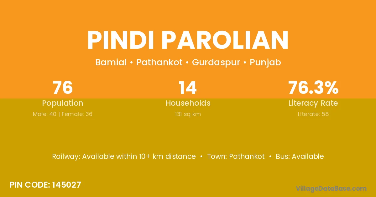 According to Census 2011 information, the village code of Pindi Parolian village is 145027.