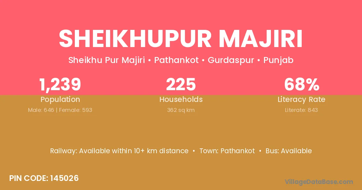 Sheikhupur Majiri village has a total population of 1,239 people, of which 646 are males and 593 are females.