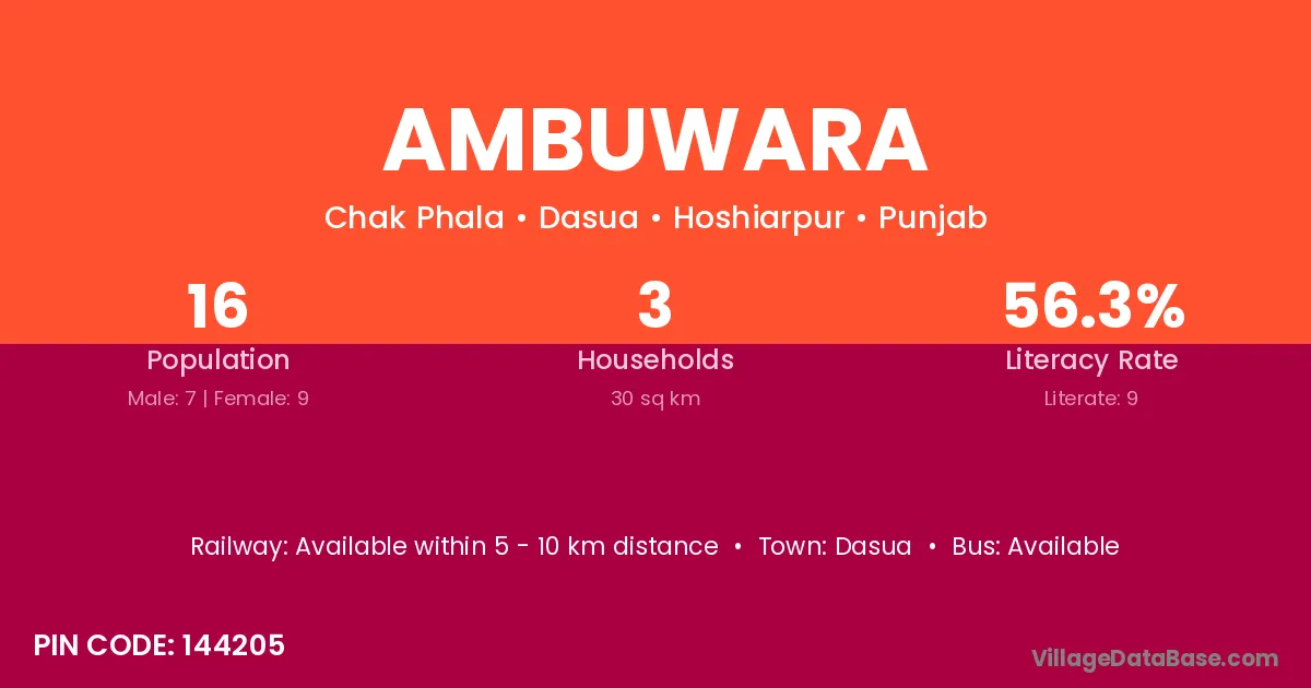 Ambuwara village has a total population of 16 people, of which 7 are males and 9 are females.
