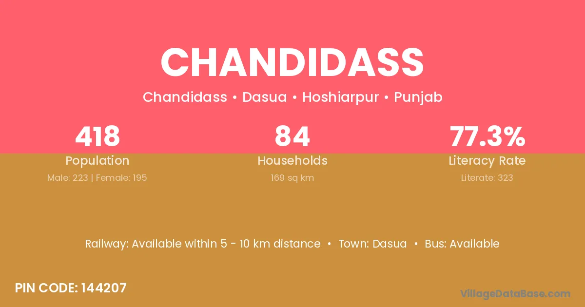 According to Census 2011 information, the village code of Chandidass village is 144207.
