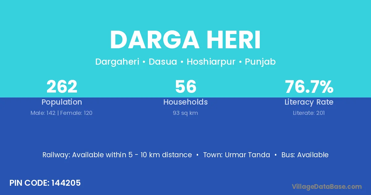 Darga Heri village has a total population of 262 people, of which 142 are males and 120 are females.