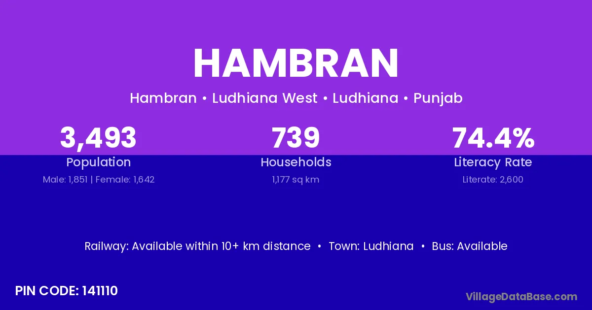According to Census 2011 information, the village code of Hambran village is 144203.