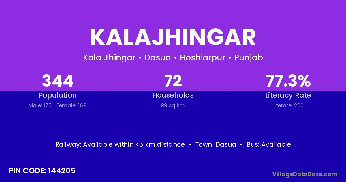Dasua is the nearest town to Kalajhingar village for major economic activities