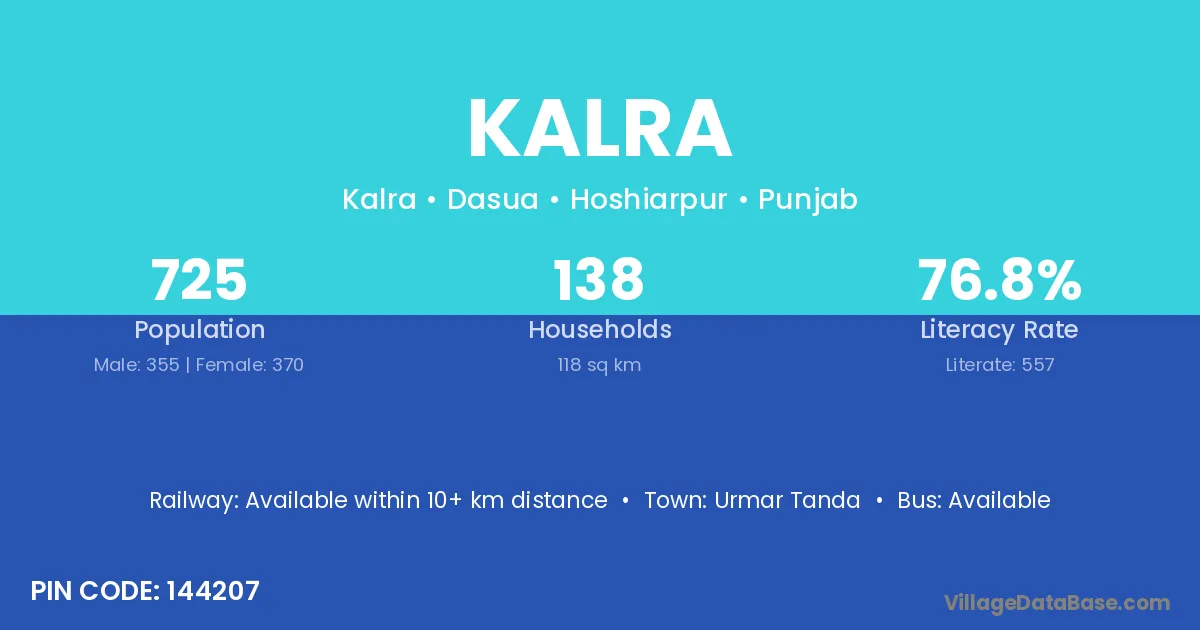 Urmar Tanda is the nearest town to Kalra village for major economic activities