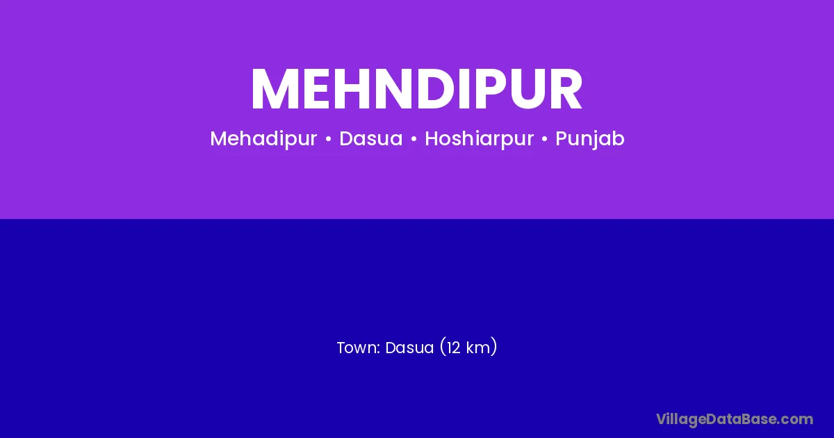 Dasua (12 km) is the nearest town to Mehndipur village for major economic activities and is located approximately 12 km away.