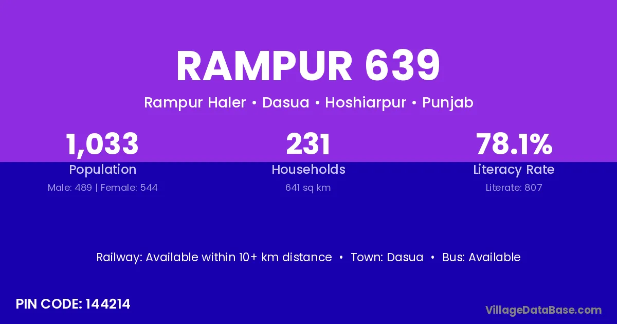 Dasua is the nearest town to Rampur 639 village for major economic activities