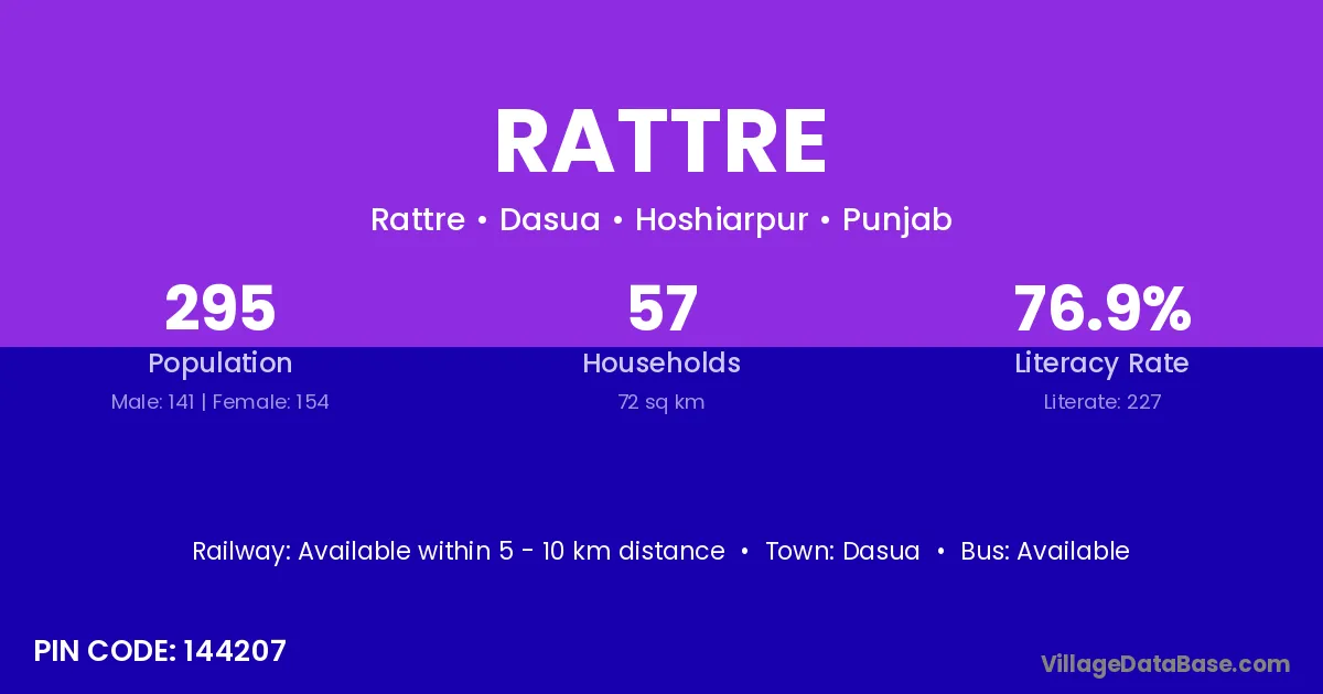 Rattre village has a total population of 295 people, of which 141 are males and 154 are females.