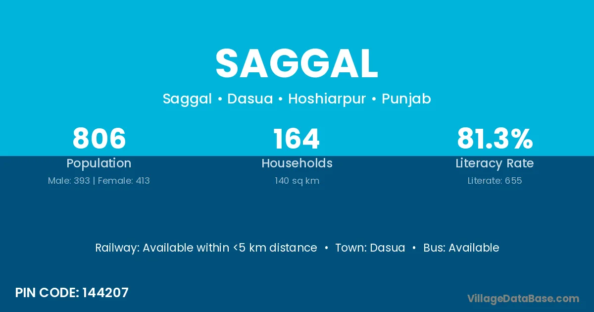According to Census 2011 information, the village code of Saggal village is 144207.