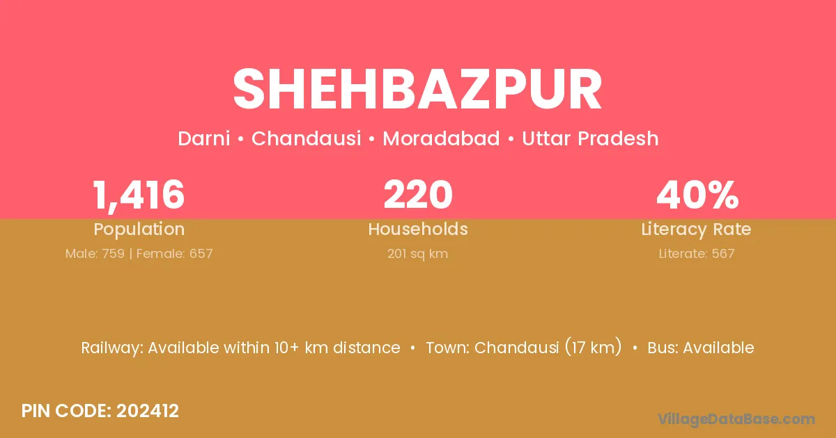 Shehbazpur village has a total population of 1,377 people, of which 709 are males and 668 are females.