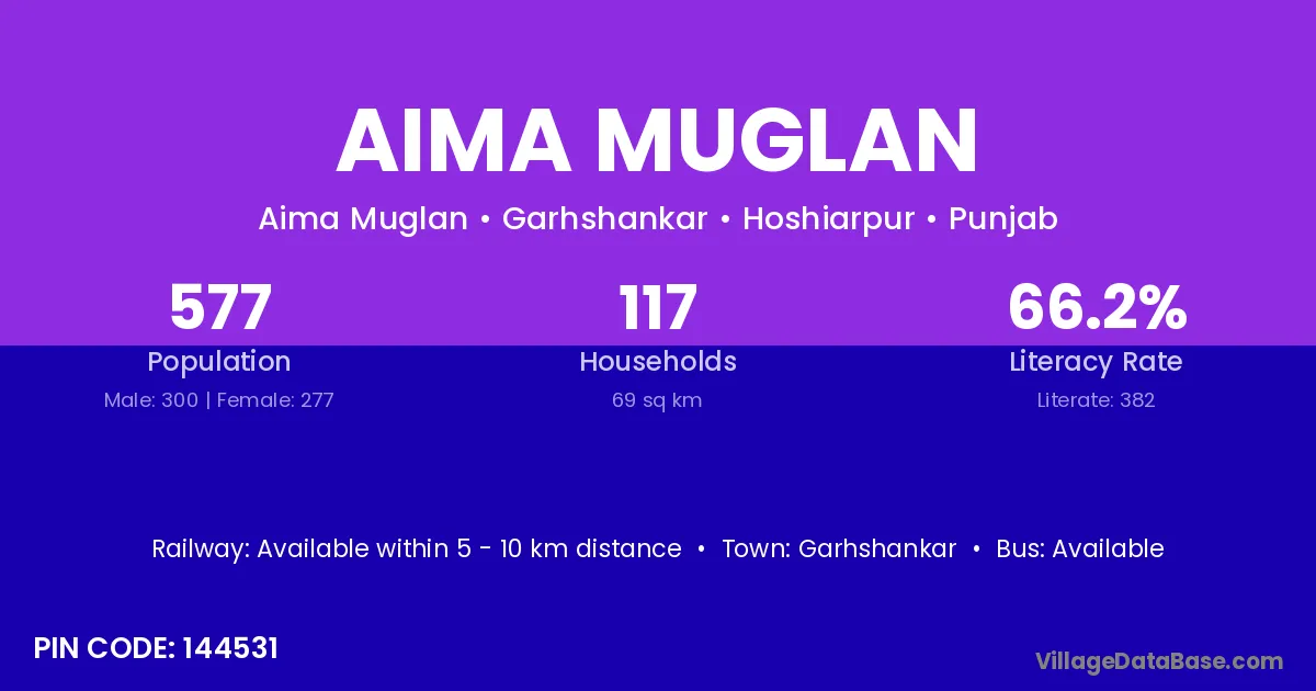 Garhshankar is the nearest town to Aima Muglan village for major economic activities
