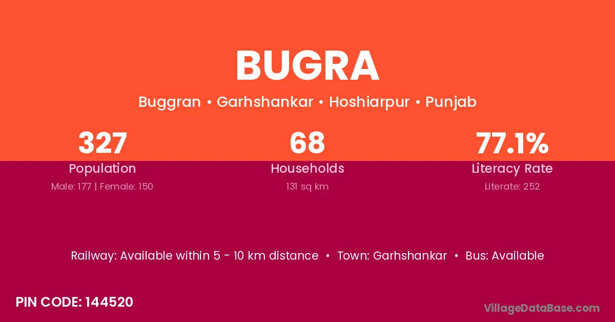 Garhshankar is the nearest town to Bugra village for major economic activities