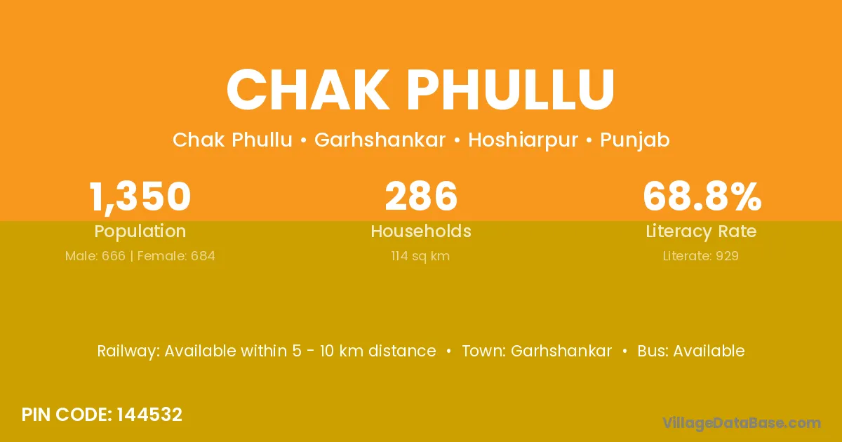 Chak Phullu village has a total population of 1,350 people, of which 666 are males and 684 are females.