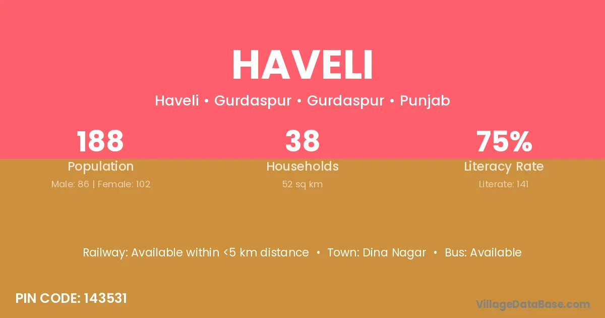 According to Census 2011 information, the village code of Haveli village is 144214.