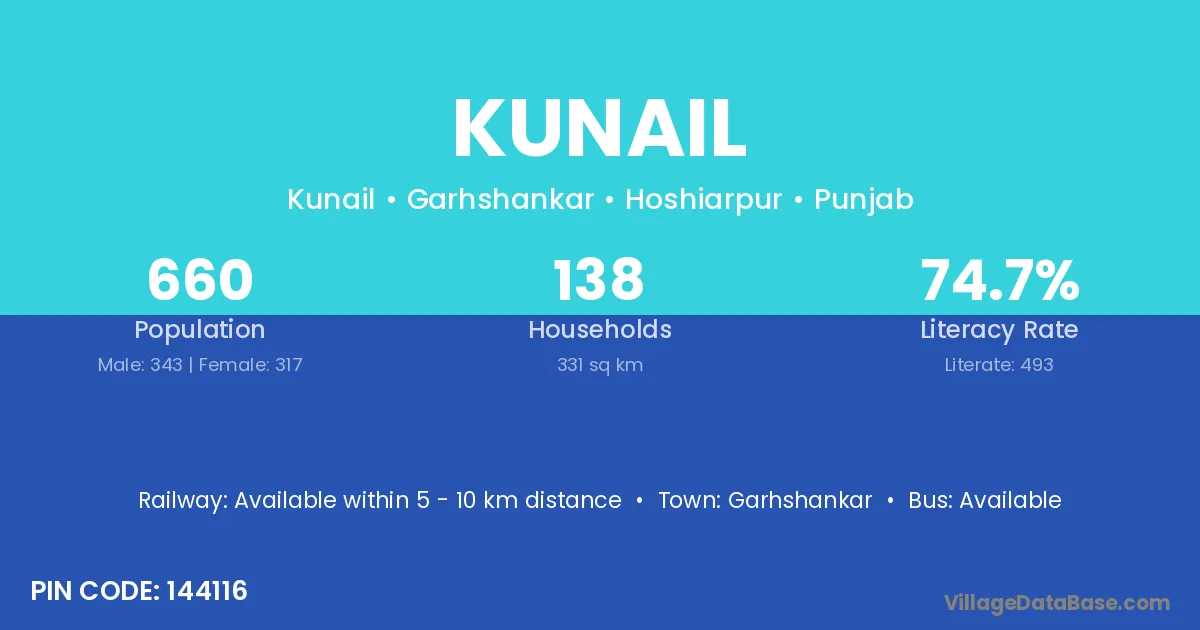 Kunail village has a total population of 660 people, of which 343 are males and 317 are females.