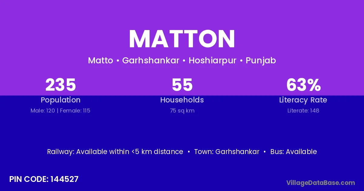 Matton village has a total population of 235 people, of which 120 are males and 115 are females.