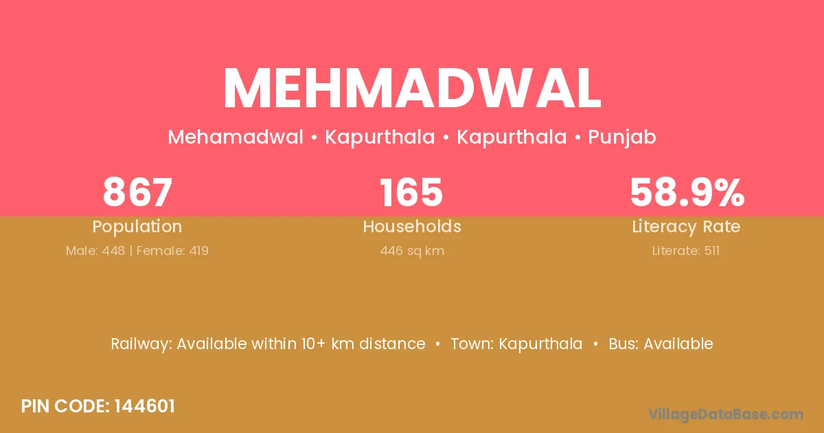According to Census 2011 information, the village code of Mehmadwal village is 146102.