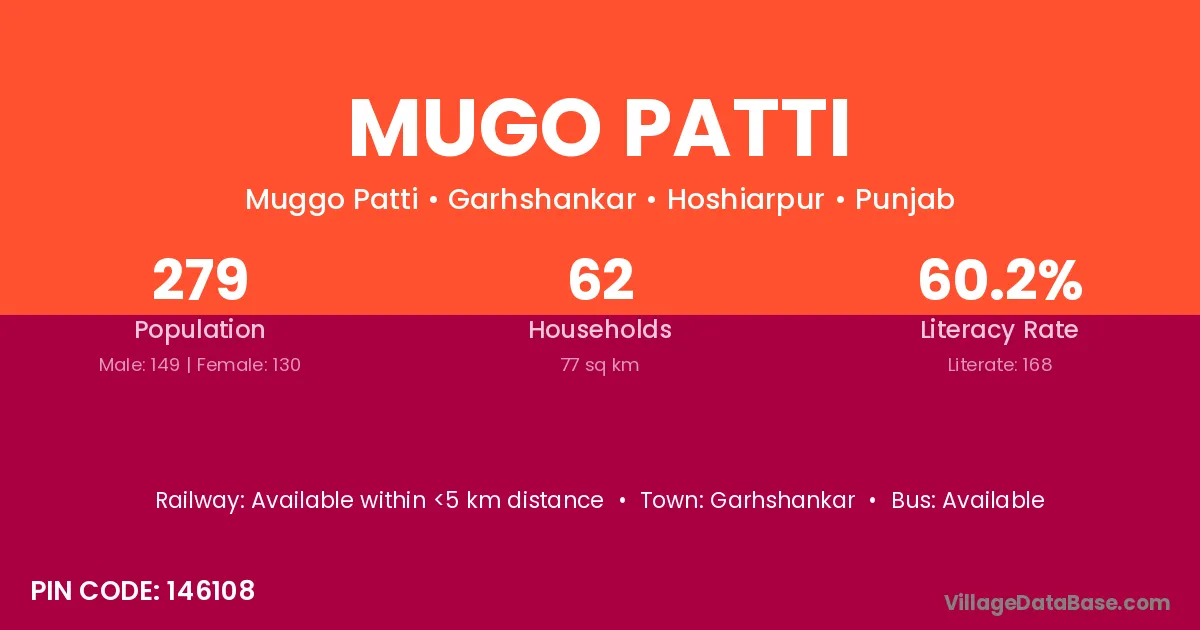 Garhshankar is the nearest town to Mugo Patti village for major economic activities