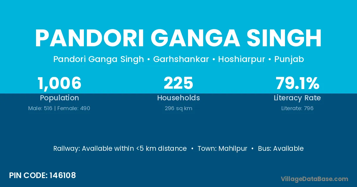 Pandori Ganga Singh village has a total population of 1,006 people, of which 516 are males and 490 are females.