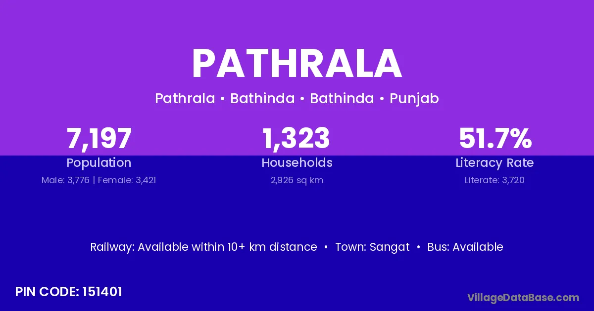 According to Census 2011 information, the village code of Pathrala village is 144214.