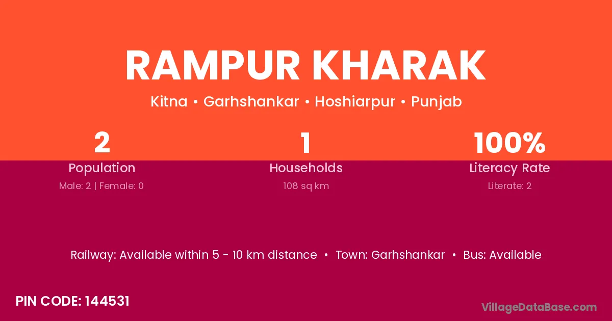 Garhshankar is the nearest town to Rampur Kharak village for major economic activities