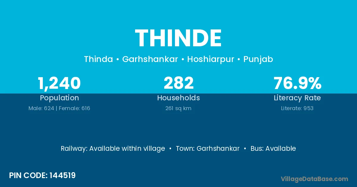 Garhshankar is the nearest town to Thinde village for major economic activities
