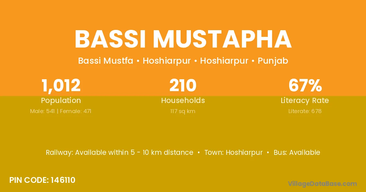 Hoshiarpur is the nearest town to Bassi Mustapha village for major economic activities