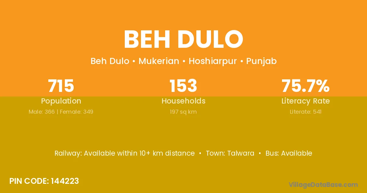 Talwara is the nearest town to Beh Dulo village for major economic activities