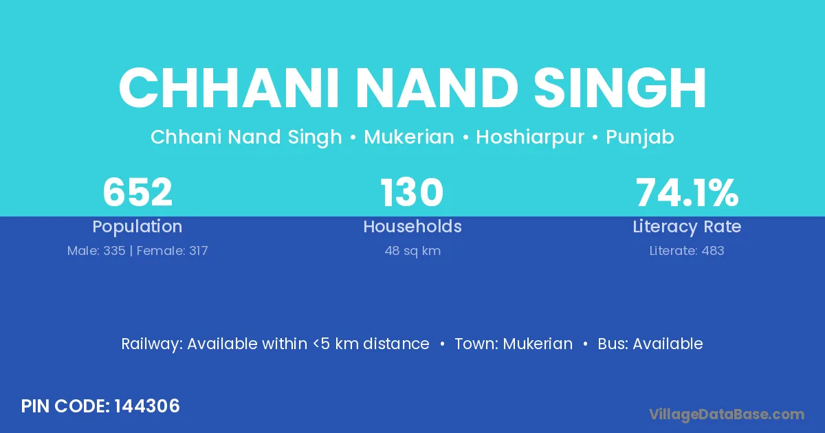 Mukerian is the nearest town to Chhani Nand Singh village for major economic activities
