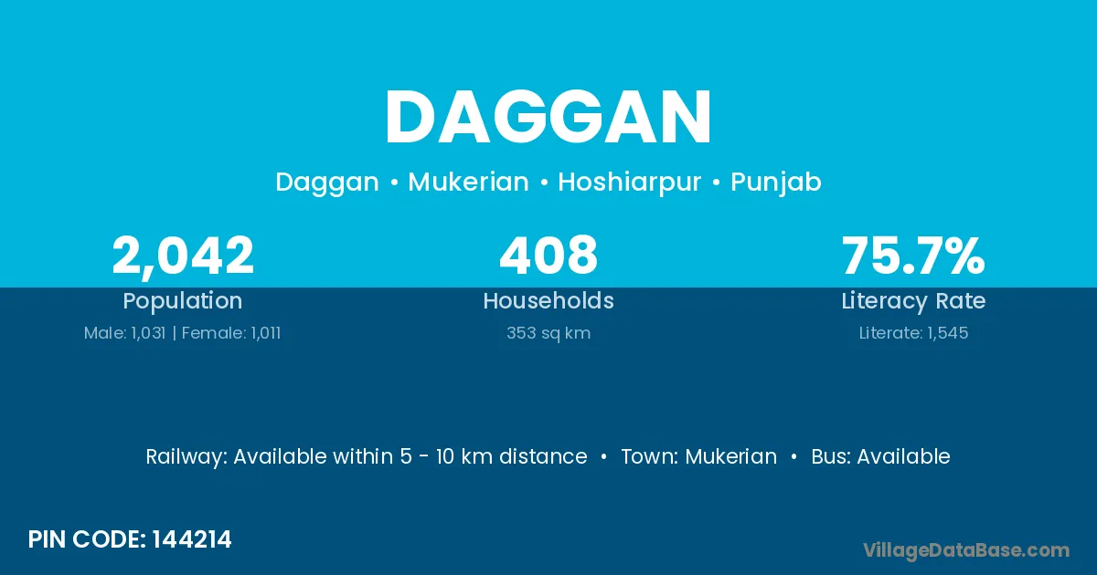 Mukerian is the nearest town to Daggan village for major economic activities