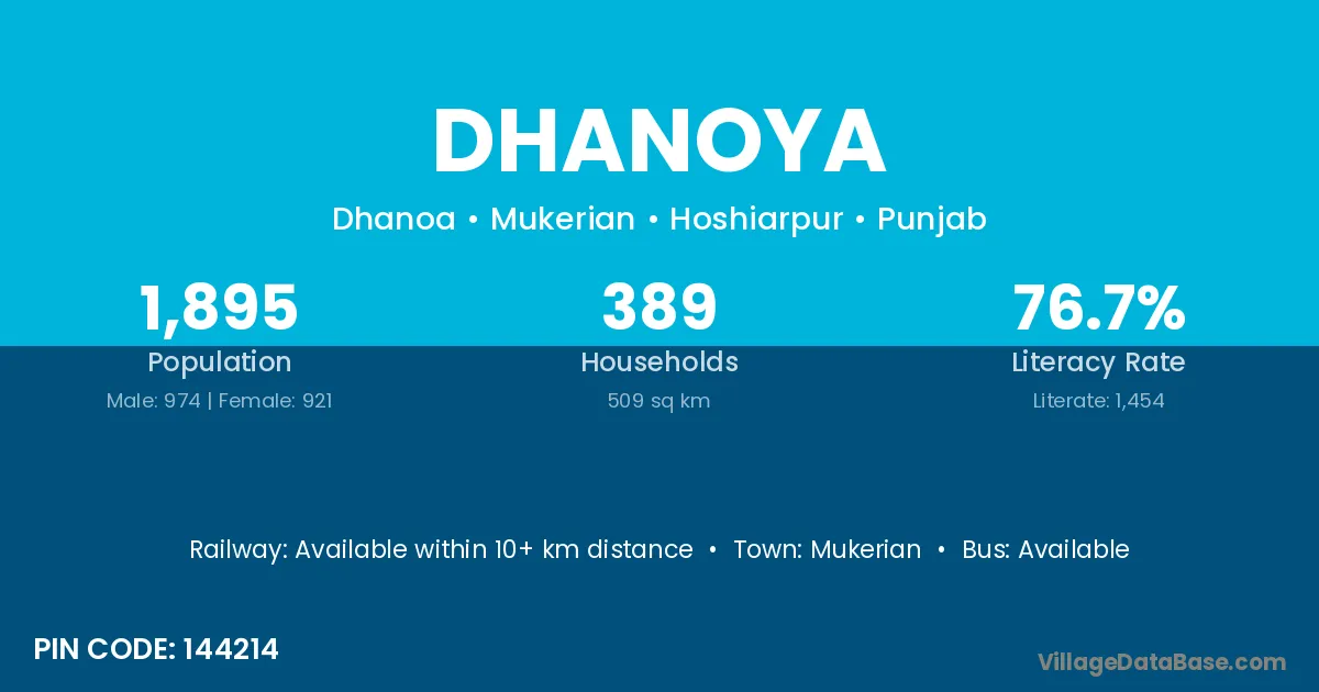 Mukerian is the nearest town to Dhanoya village for major economic activities