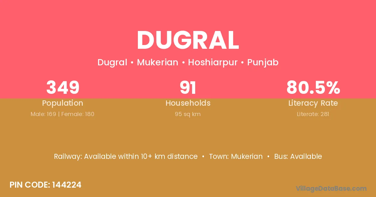 Mukerian is the nearest town to Dugral village for major economic activities