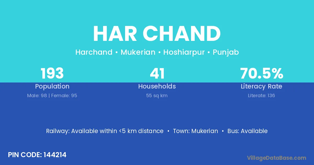 Mukerian is the nearest town to Har Chand village for major economic activities