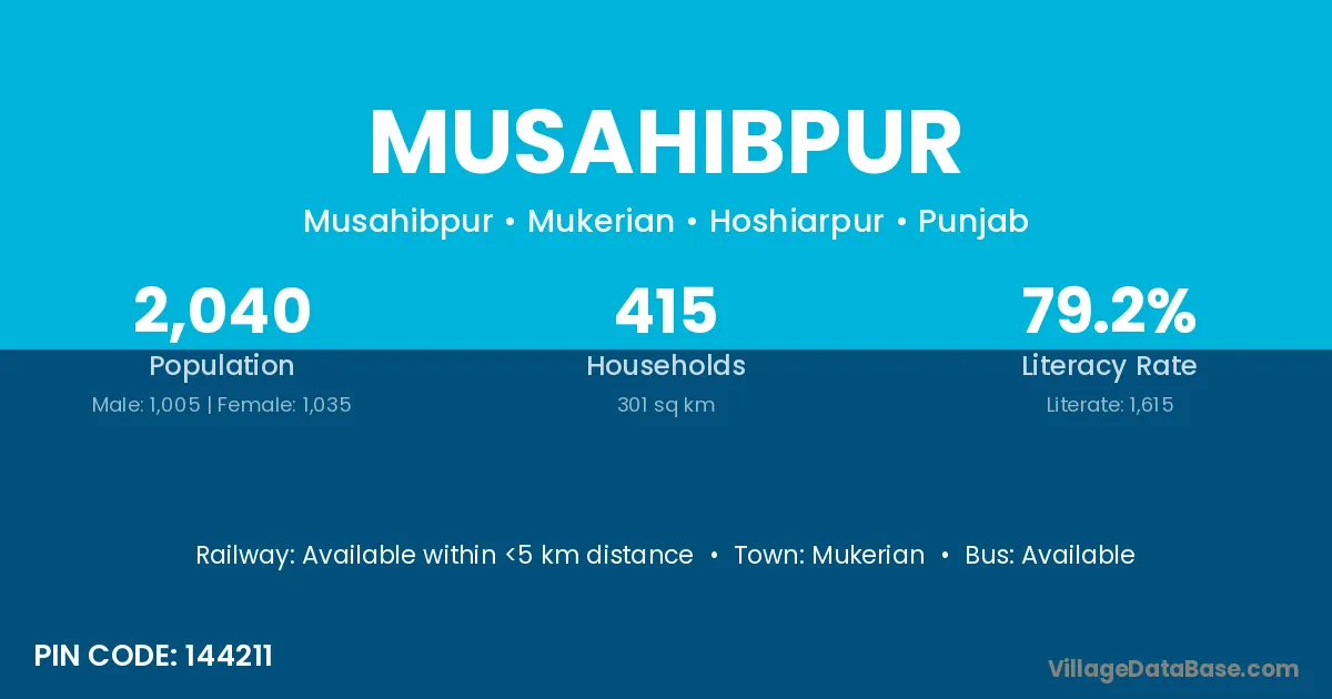Mukerian is the nearest town to Musahibpur village for major economic activities