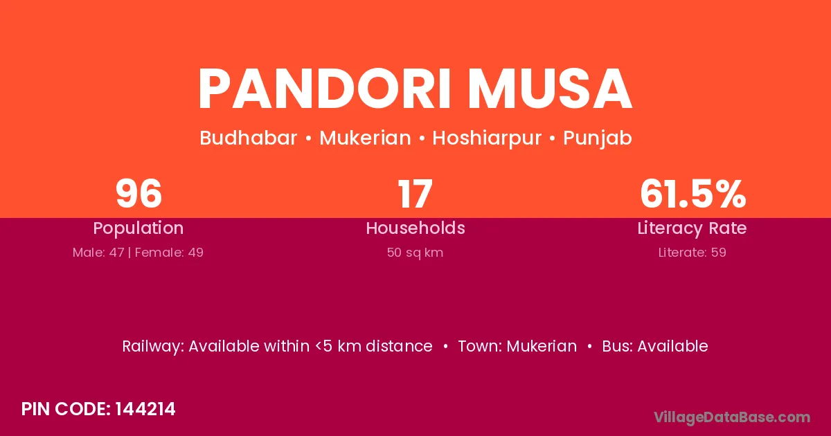 Pandori Musa village is located in the Mukerian Tehsil of the Hoshiarpur district in Punjab .