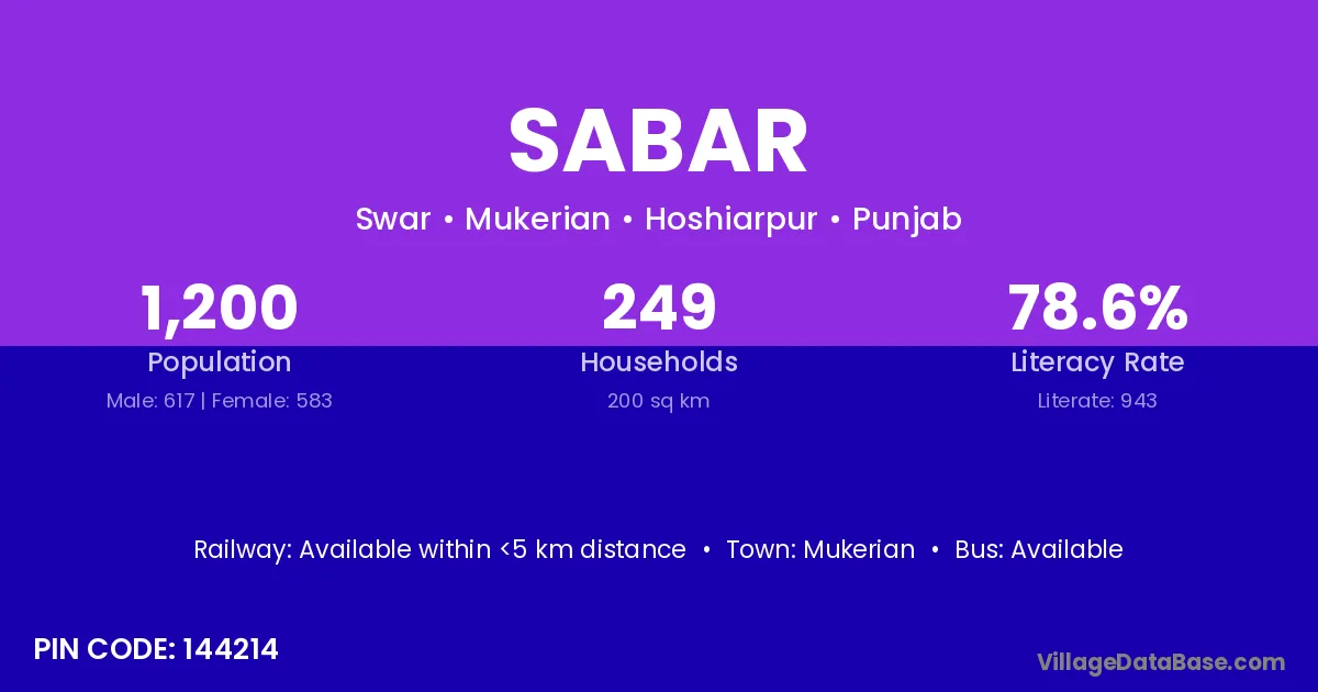 Mukerian is the nearest town to Sabar village for major economic activities