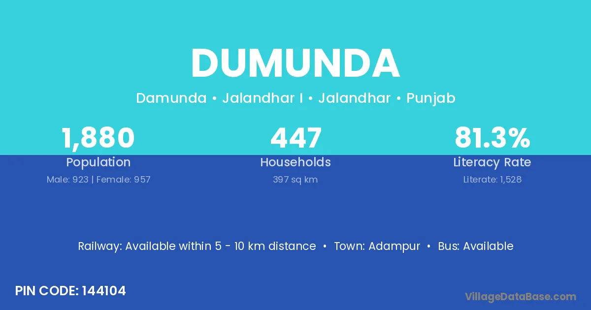 According to Census 2011 information, the village code of Dumunda village is 144104.