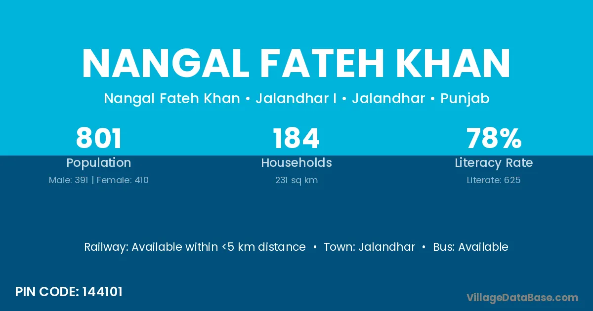 Jalandhar is the nearest town to Nangal Fateh Khan village for major economic activities