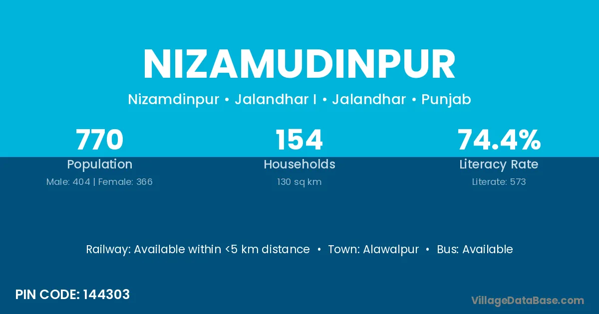 Alawalpur is the nearest town to Nizamudinpur village for major economic activities