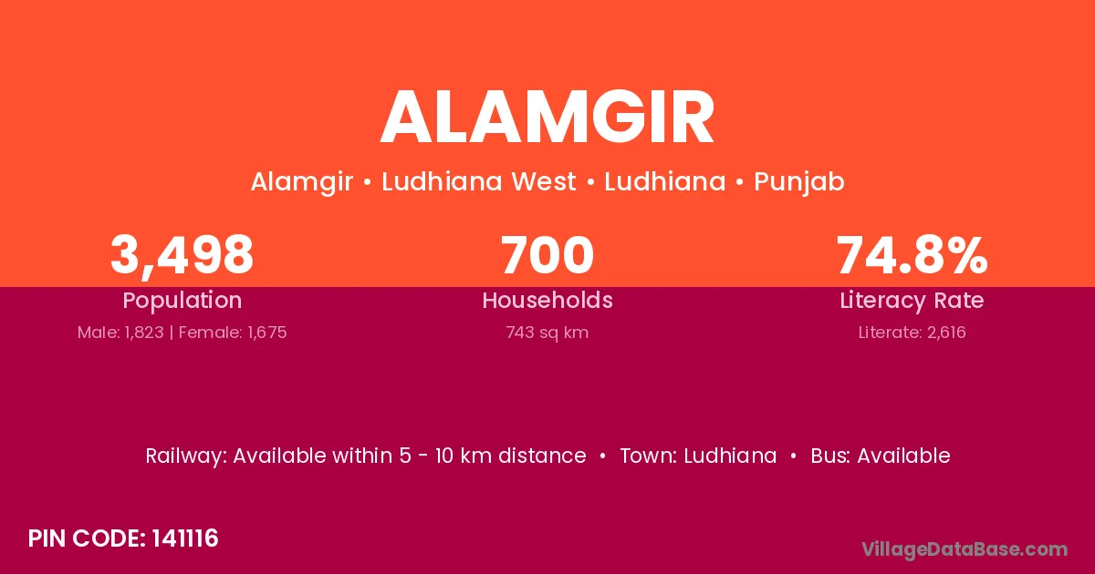 Bhogpur is the nearest town to Alamgir village for major economic activities