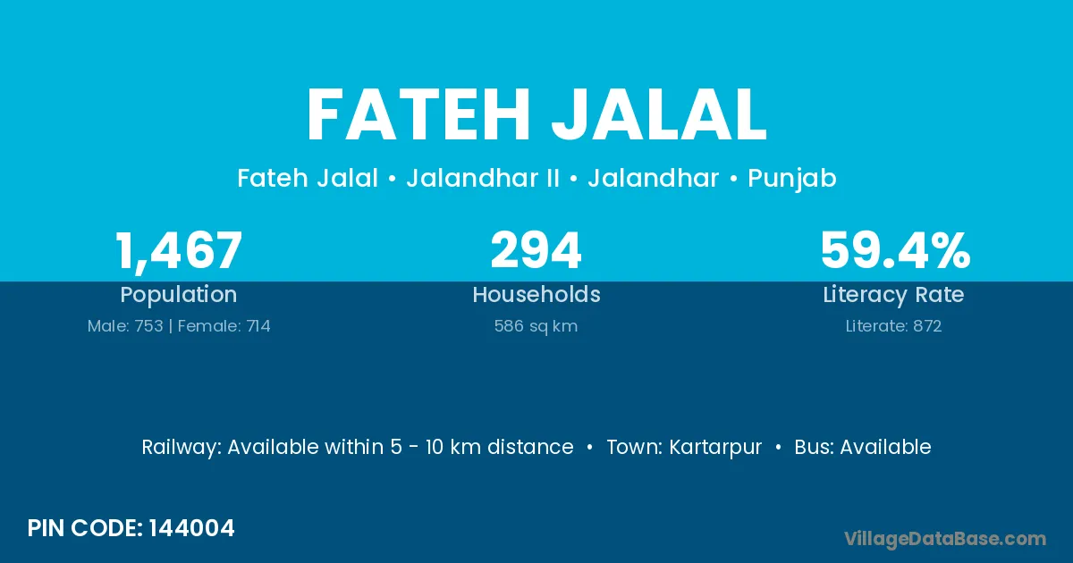 According to Census 2011 information, the village code of Fateh Jalal village is 144004.