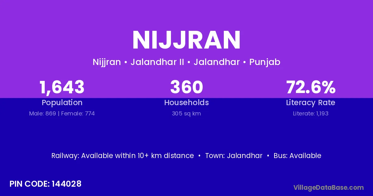 Jalandhar is the nearest town to Nijjran village for major economic activities