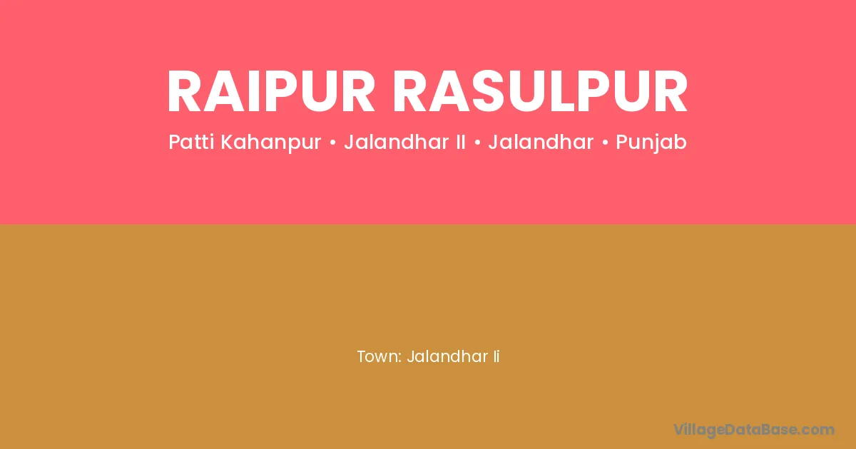 Jalandhar Ii is the nearest town to Raipur Rasulpur village for major economic activities