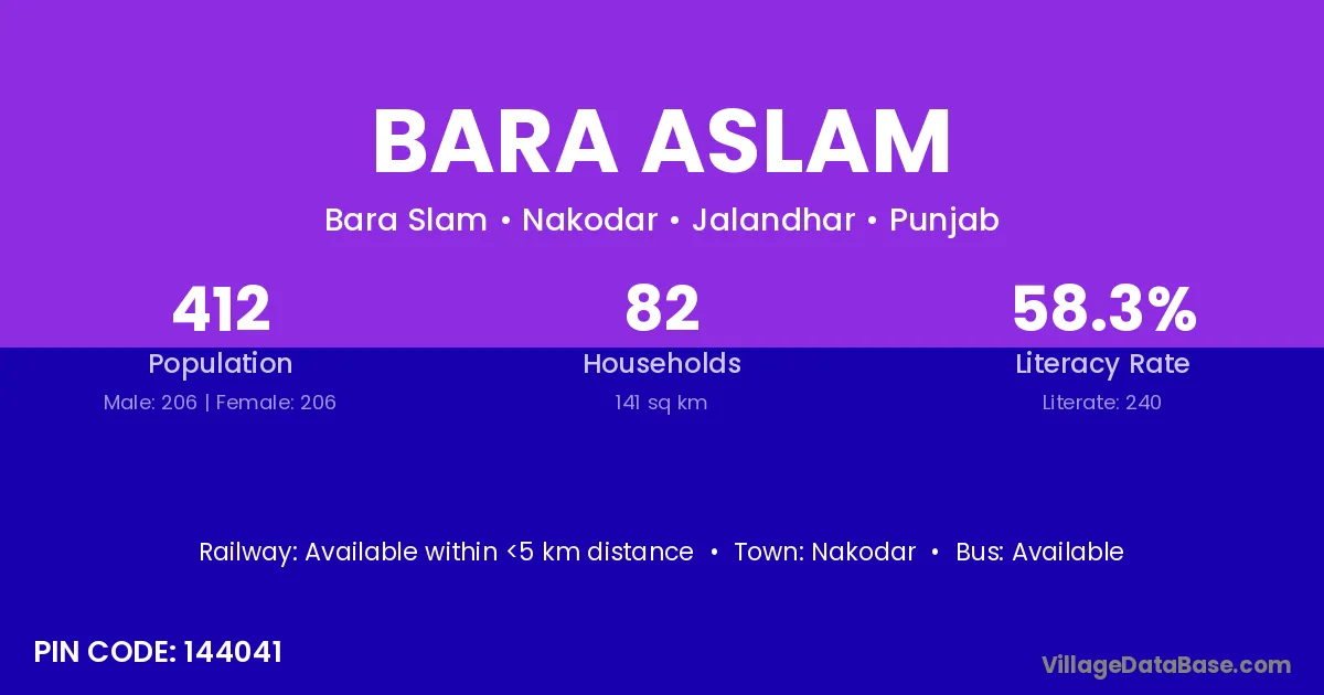 According to Census 2011 information, the village code of Bara Aslam village is 144041.