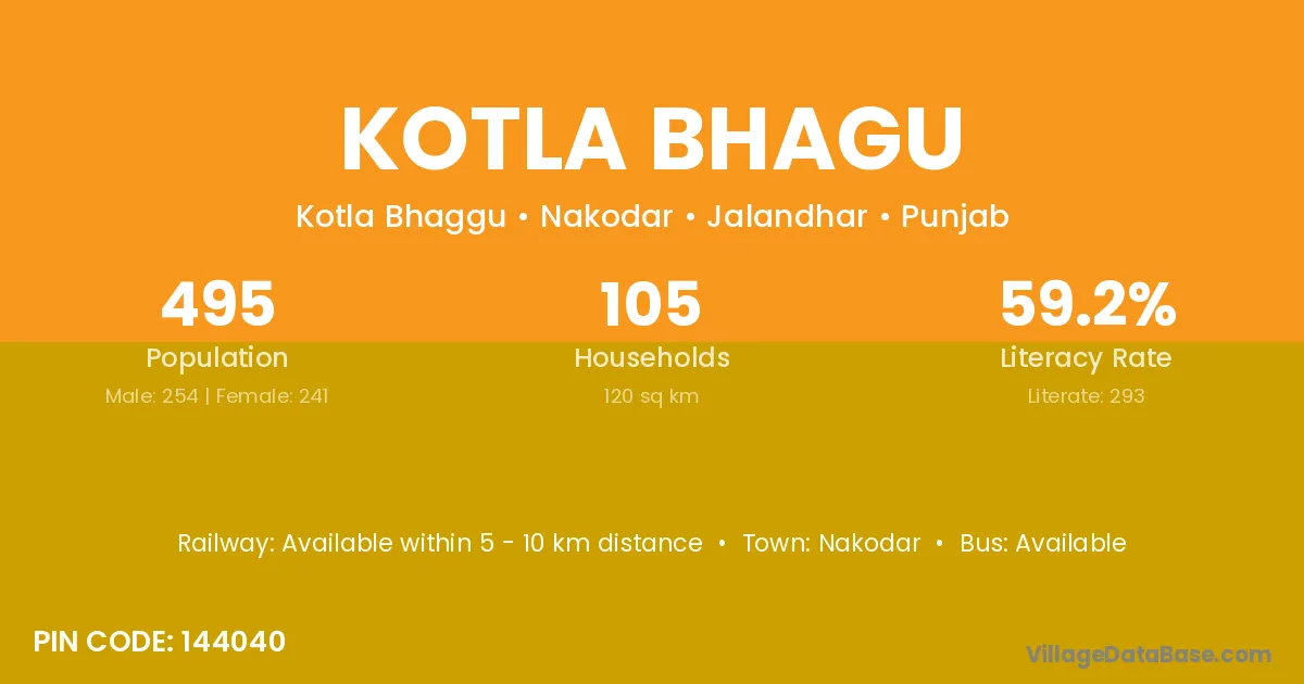 Kotla Bhagu village has a total population of 495 people, of which 254 are males and 241 are females.