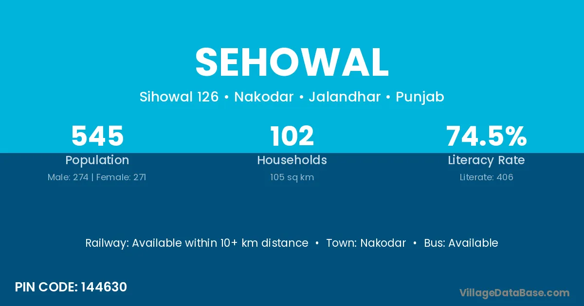 Sehowal village has a total population of 545 people, of which 274 are males and 271 are females.